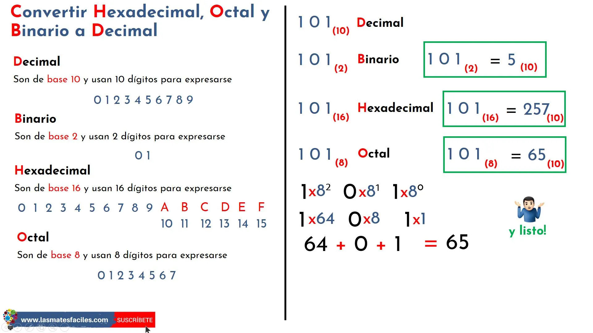 Sistema Decimal: Utiliza diez símbolos (0 al 9) y se basa en potencias de diez. Es el sistema que utilizamos habitualmente en nuestra vida diaria.